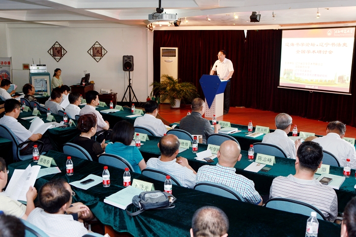 暑假期间,“辽海书学论坛·辽宁书法史全国学术研讨会”在必赢官网国际教育学院会议室召开。辽宁省政协文化和文史委员会主任张凤羽,辽宁省文联党组副书记、副主席喻国伟,辽宁省出版集团董事长李家巍,辽宁省文联副主席胡崇炜,必赢官网校长林群、党委副书记贾玉明、副校长夏敏等出席会议。来自山东、吉林和辽宁等地的专家学者和获奖代表参加了会议。必赢官网书法教育研究所所长杨宝林主持会议。