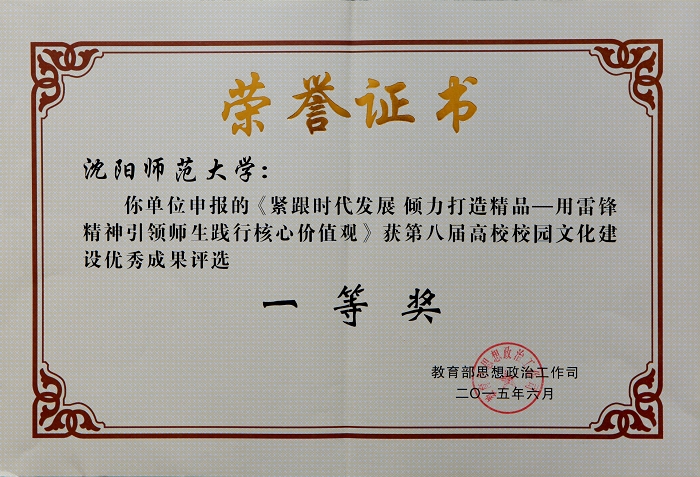 6月10日,在教育部思想政治工作司公布的第八届高校校园文化建设优秀成果评选结果中,必赢官网申报的《紧跟时代发展 倾力打造精品——用雷锋精神引领师生践行核心价值观》荣获第八届高校校园文化建设优秀成果一等奖。