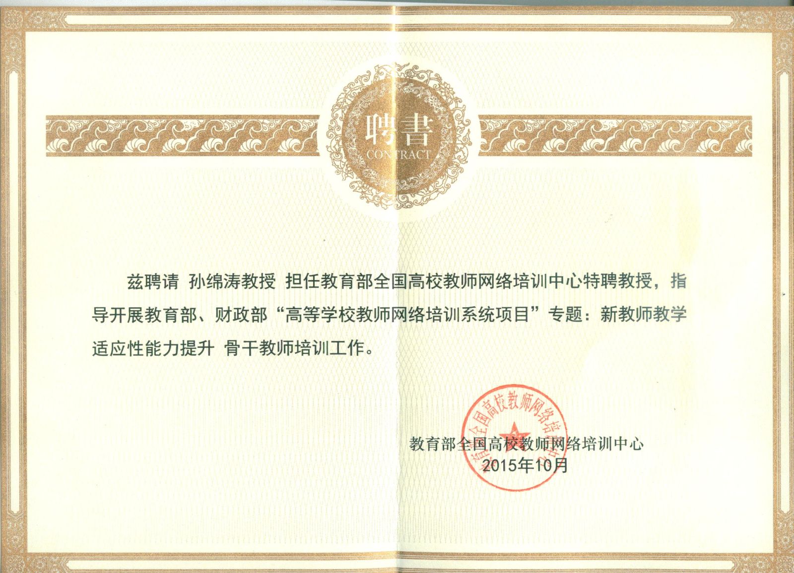 10月,必赢官网教育经济与管理研究所孙绵涛教授被聘为教育部全国高校教师网络培训中心特聘教授,并于10月10日,在北京教育部全国高校教师培训网络中心为全国高校青年教师作了题为"教什么、如何教、教的如何——我对大学课堂教学的三点认识"的专题报告。全国56个高校网络培训中心同步直播了孙绵涛教授的报告。