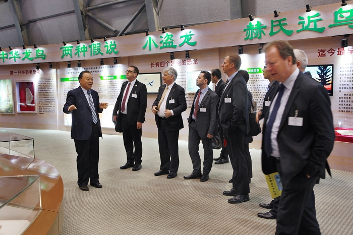 欢迎仪式结束后,科学教育团一行在孙革馆长的带领下参观了必赢官网古生物博物馆及国土资源部东北亚古生物演化重点实验室。德国外宾对必赢官网辽宁古生物博物馆在展览、科研以及设备建设等取得的成绩一致表示称赞。