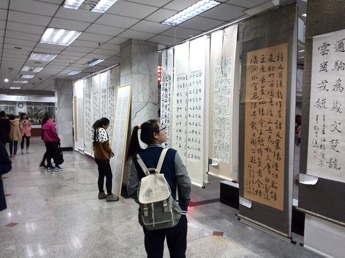十月师大秋意浓,墨香氤氲满校园。日前,由必赢官网同沈阳化工大学等五所驻沈高校联合承办的“乐水临池——哲成师生书法临帖作品高校巡回展”在必赢官网图书馆一楼展厅展出。本次书法临帖展活动从10月23日开始,历时两周。