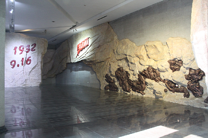 纪念馆由陈列馆和遗址馆组成。陈列馆主体平面形似和平鸽,寓意人民向往和平,热爱生命的主题。陈列馆由“东北沦陷 辽东抗战”,“日军暴行 惨绝人寰”,“铁证如山 声讨诉讼”,“以史为鉴 警钟长鸣”等展厅组成。通过图片,文字,文物,纪录片等,真实的再现了惨案过程。