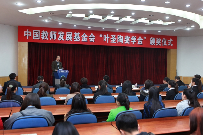 教师教育处副处长郑建林介绍了叶圣陶先生的生平。刘天成处长介绍了中国教师发展基金会和“叶圣陶奖学金”的基本情况,对学校“叶圣陶奖学金”评选过程进行了说明,并宣读了“叶圣陶奖学金”获得者名单。副校长关松林为获奖学生颁发了荣誉证书。