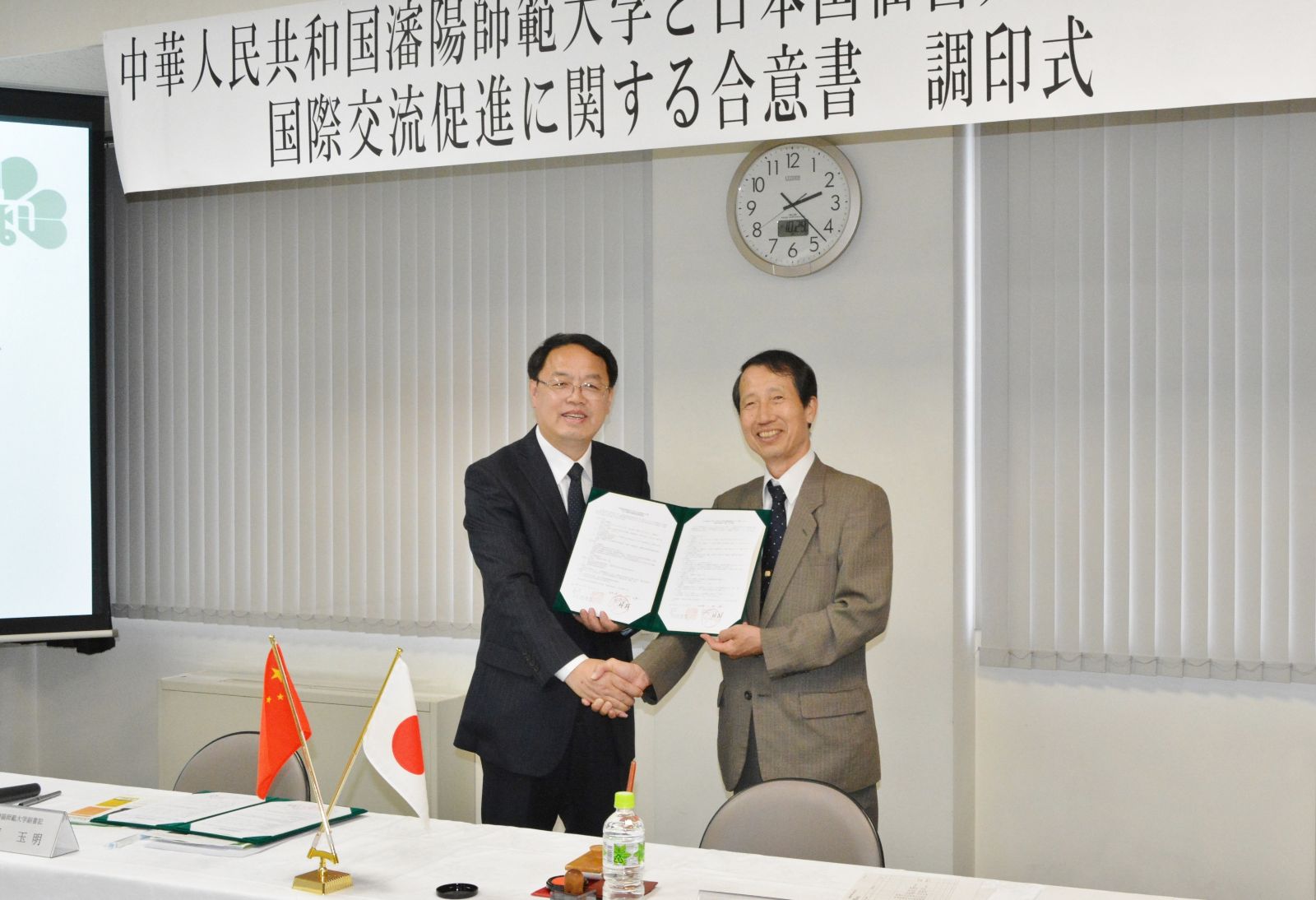 党委副书记贾玉明与北海道教育大学校长蛇穴治夫签署合作备忘录