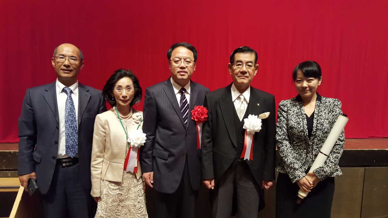 贾玉明一行与沟部学园理事长沟部仁夫妇合影