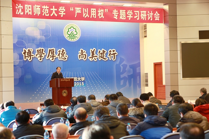 11月26日下午,按照省委要求,学校在软件学院报告厅召开“三严三实”专题学习研讨会,就党员领导干部“严以用权”进行专题学习研讨。党委副书记、纪委书记贾玉明代表学校领导班子作了中心发言。学校领导班子成员、全体中层干部共200余人参加会议。会议由党委书记于文明主持。