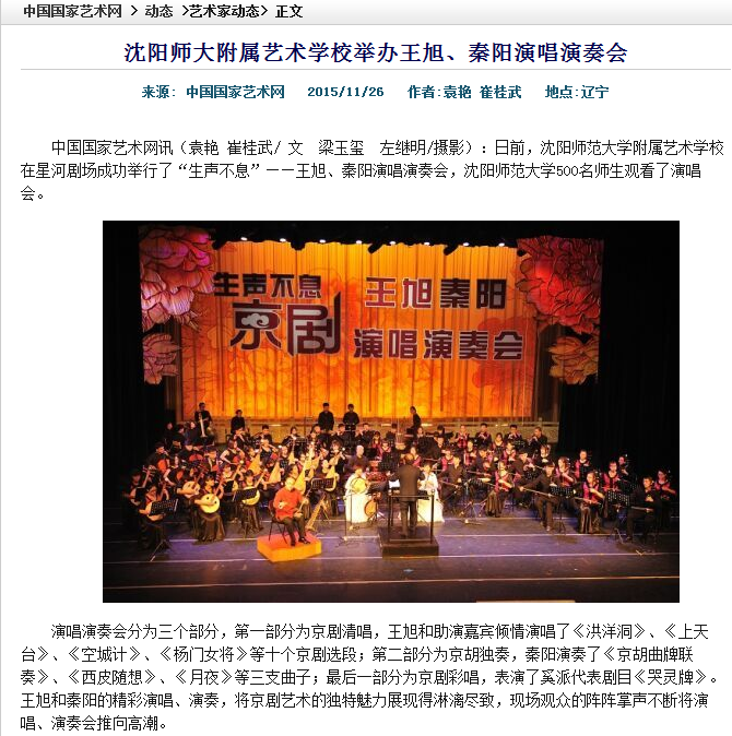 中国国家艺术网报道附属艺术学校举办王旭、秦阳演唱演奏会