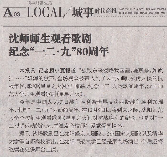 《时代商报》:沈师师生观看歌剧 纪念“一二·九”80周年