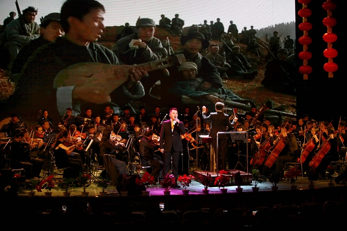 一曲《红旗颂》拉开了音乐会的帷幕。激昂的旋律,宏伟庄严,气壮山河,动人心魄,讴歌了伟大祖国蒸蒸日上的繁荣景象。同步配合播放的舞台LED背景屏上,盛大的阅兵场面,无不彰显着国力的强大和威武,令人心潮澎湃,倍感骄傲和自豪。
