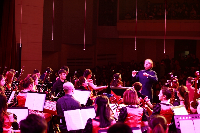 演出在大型器乐合奏《喜迎新春》中拉开序幕,铿锵的鼓声与京胡、月琴、琵琶等结合在一起,刚劲有力,充满激情,营造了喜庆祥和的节日气氛。