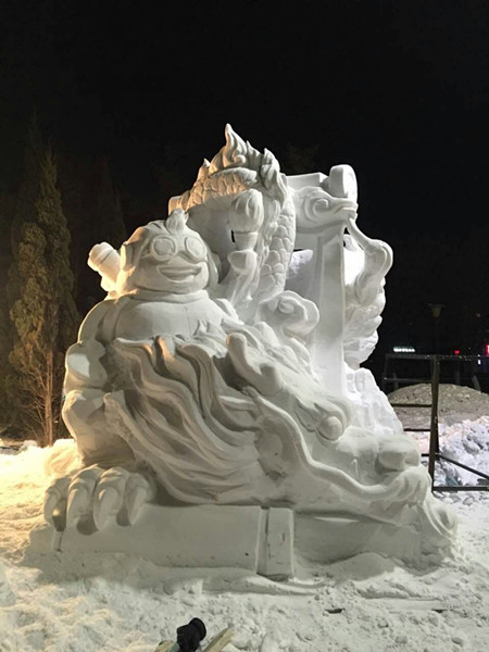 第八届国际大学生雪雕大赛二等奖作品《神笔马良》