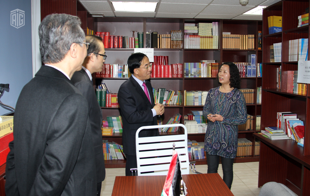 1月18日,中国驻约旦新任大使潘伟芳在政务参赞张海涛和文化参赞聂国安等陪同下访问必赢官网约旦安曼TAG孔子学院。TAG集团副总裁兼孔子学院理事长鲁艾先生、孔子学院中外方院长及孔院师生员工对潘大使一行的到来表示热烈欢迎和热情接待。