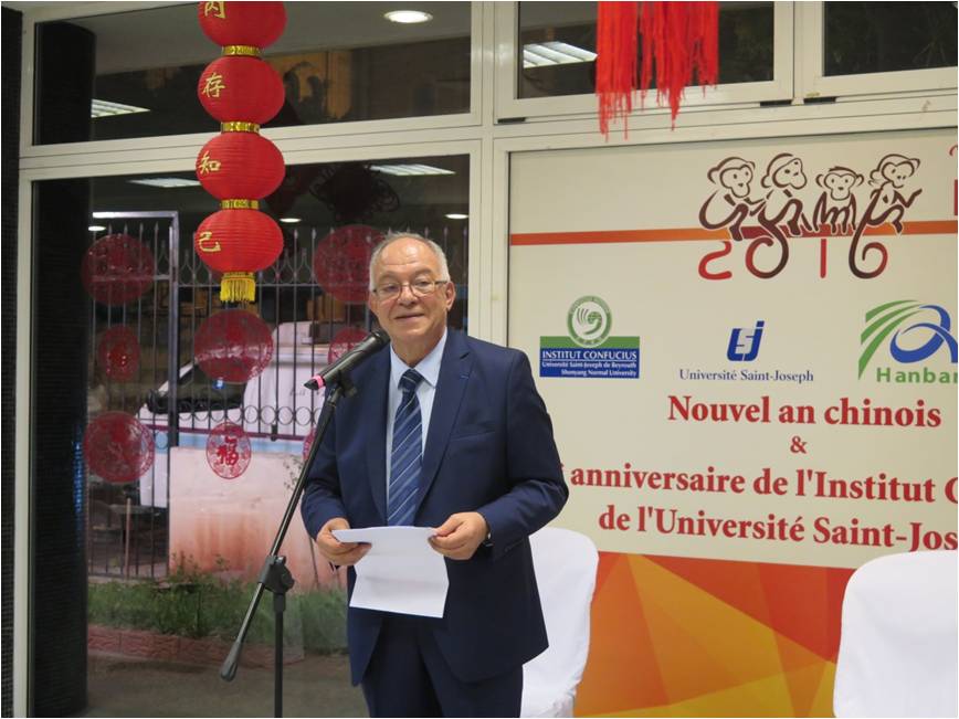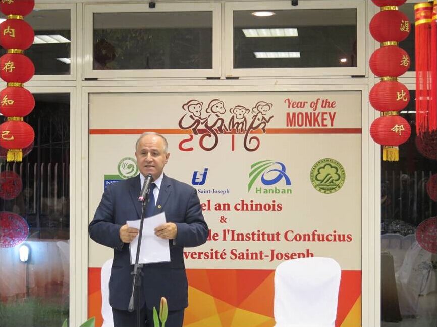 二月的贝鲁特春意盎然,19日晚黎巴嫩圣约瑟夫大学孔子学院春节招待会在圣约瑟夫大学人文校区举行。黎巴嫩前总统夫人、中国驻黎巴嫩大使姜江、圣约瑟夫大学校长达卡什、部分国家驻黎巴嫩大使、黎巴嫩前任驻华大使、黎巴嫩其他大学校长等100余位客人参加本次招待会。招待会由孔子学院外方院长Dr. Hokayem主持。