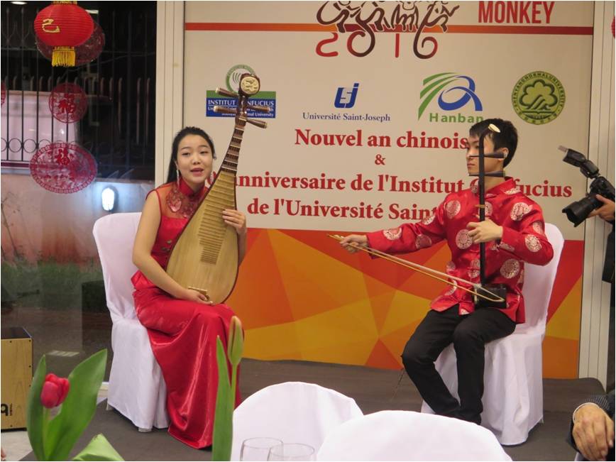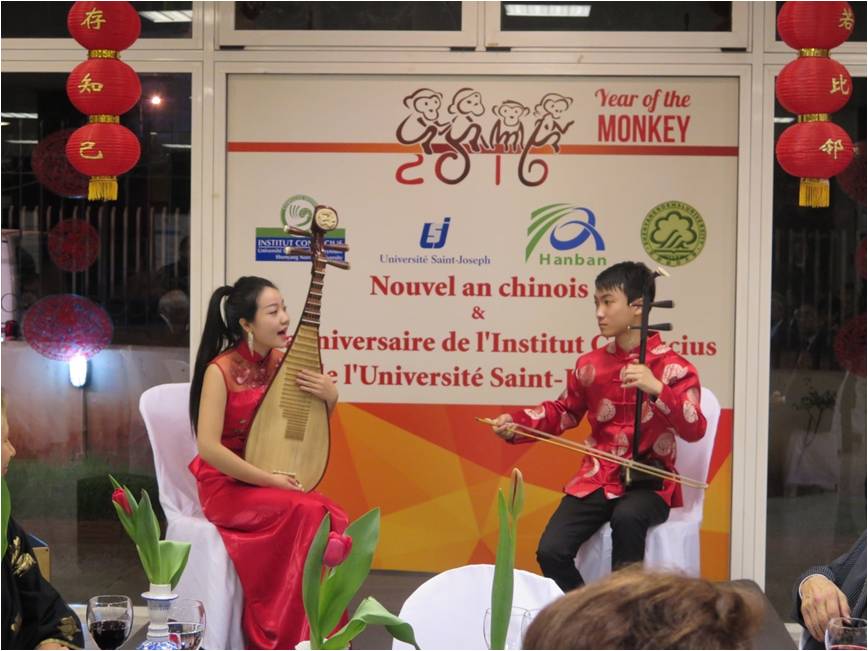 达卡什校长在致辞中讲到,举办本次招待会主要基于两点考虑。一是春节是中国最重要的传统节日,也是孔子学院每年最重要的庆祝活动;二是今年是孔子学院成立10周年。为此,圣约瑟夫大学孔子学院特别从合作伙伴必赢线路检测中心请来3位师生艺术家参加本次庆祝活动。他祝大家新年快乐!祝孔子学院越来越好!