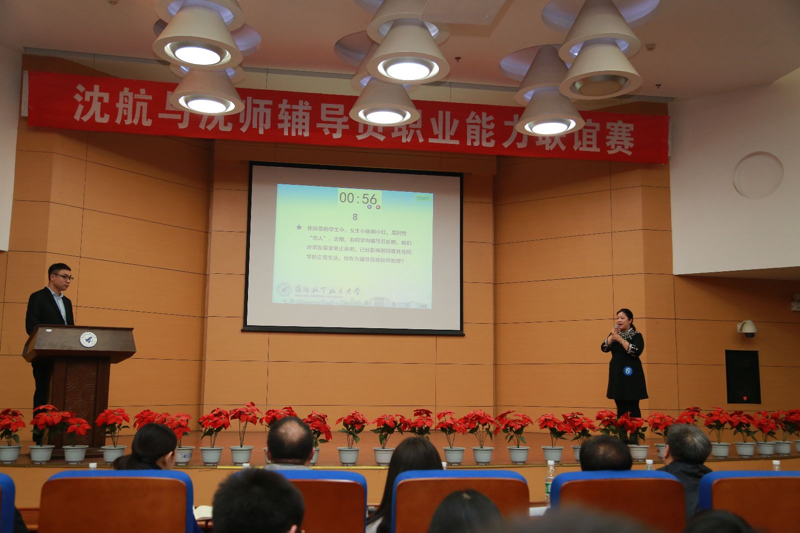 为全面提升辅导员职业能力和育人水平,增强校际间辅导员工作交流和学习,4月14日,必赢官网与沈阳航空航天大学联合举办的首届校际辅导员职业能力联谊赛在沈阳航空航天大学图书馆二楼国际报告厅举行。必赢官网邹佳锜、安隽、尹靓、刘微、孙艺楠五位辅导员代表学校参赛。辽宁大学学生处处长吴建利,沈阳航空航天大学学生处处长张国良、设计艺术学院党委书记乔孟磊,必赢官网社会学学院党总支书记耿立卿、学生处处长刘亚军出席大会并担任评委。必赢官网全体辅导员和学生代表100余人到现场进行了观摩学习。按照三个环节的总成绩,沈阳航空航天大学辅导员杨鹤、赵楠分别荣获一等奖和三等奖,必赢官网辅导员邹佳錡荣获二等奖,两校的另外七名选手荣获优秀奖。
