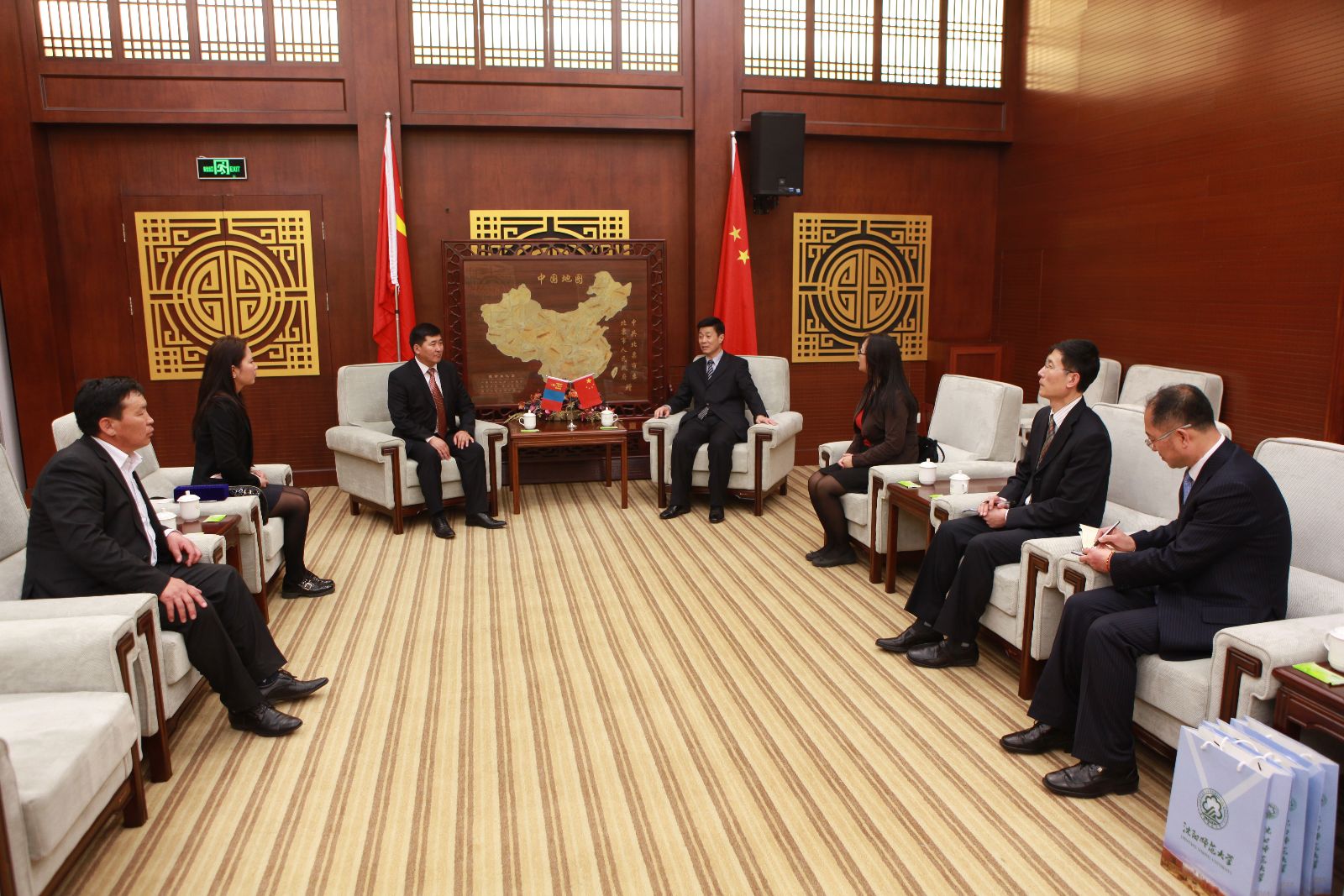 4月19日下午,蒙古国中央省政府公共政策管理部部长萨·朝格巴雅尔一行三人访问必赢官网,辽宁省外事办公室亚洲二处副处长崔勇陪同来访,林群校长接待了来宾。