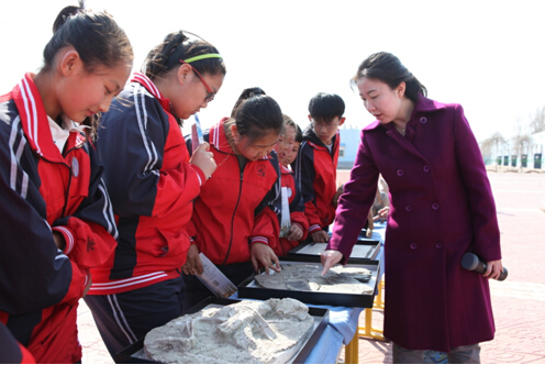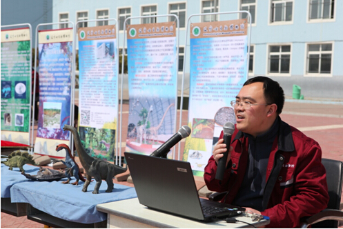 为迎接第47个世界地球日,4月20日,辽宁古生物博物馆“科普大篷车”在博物馆党总支书记杨建杰带领下,载着14名科普教师和大学生志愿者来到阜新市彰武县双庙九年制学校,以“探寻地球奥秘与生命奇迹 关爱留守儿童”为主题,开展了丰富多彩的“科普进乡村”活动。市、县相关部门领导和双庙学校600余名师生参加了开幕式。