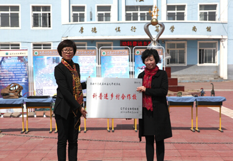 杨书记代表博物馆向戴校长颁发了“科普进乡村合作校”牌匾,双庙学校成为辽宁古生物博物馆第61个科普合作校。