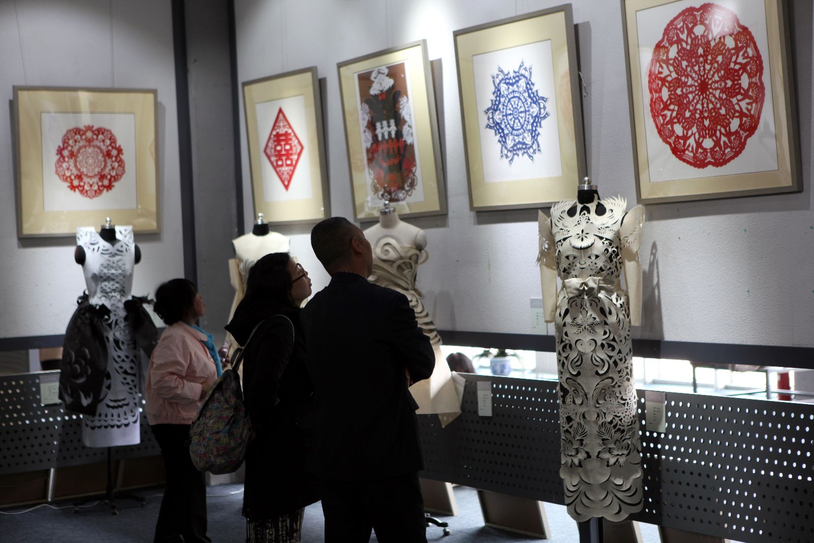 4月29日,“国家艺术基金剪纸人才培养与中国非遗传承人群剪纸培训项目成果展”在美术与设计学院美术馆隆重开幕。展出了来自东三省90名剪纸非遗传承人学员创作的约300余件作品。