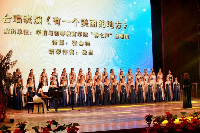学前与初等教育学院合唱表演《有一个美丽的地方》、《装扮蓝色的地球》