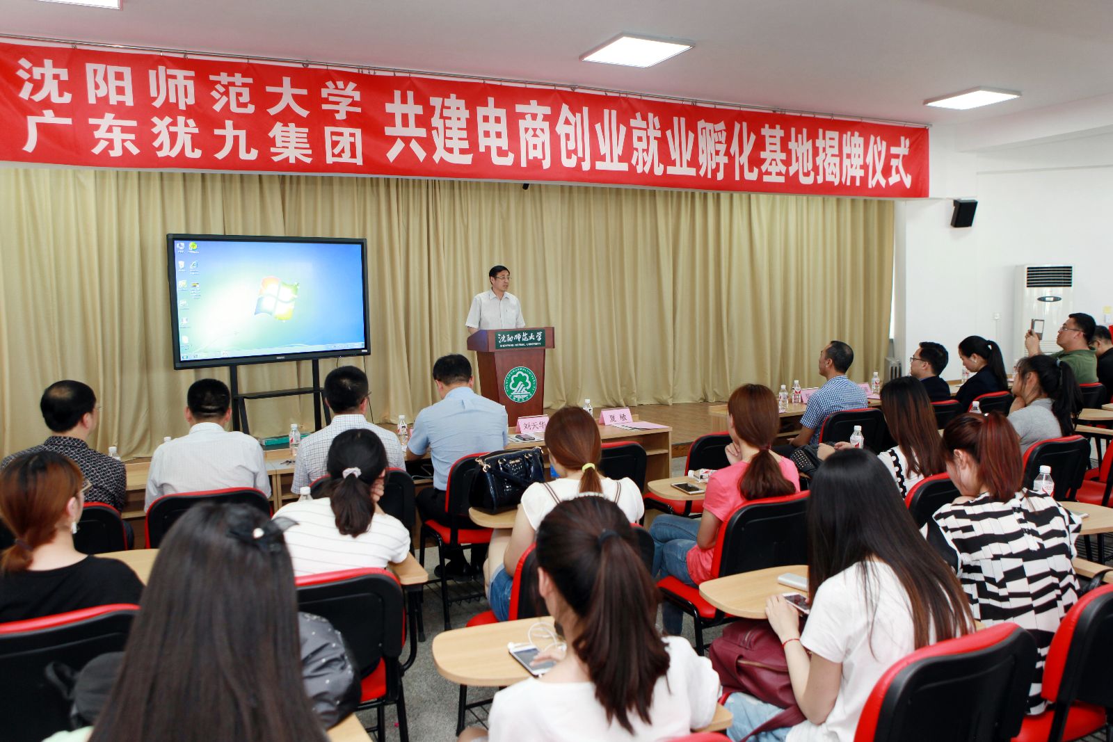6月3日14:30,必赢官网与广东犹九投资集团有限公司共建电商创业就业孵化基地揭牌仪式在创新中心五楼报告厅室举行。沈阳市就业和人才服务局创业指导处处长侯伟、副处长常亮、主任科员陈曦光,广东犹九投资集团有限公司副董事长、广东为树网络科技有限公司CEO郑华、广东犹九投资集团有限公司总裁办主任彭惠清,必赢官网副校长、本科生教育部部长夏敏及学校相关职能部门领导和学生代表百余人参加了揭牌仪式。揭牌仪式由教务处处长刘天华主持。
