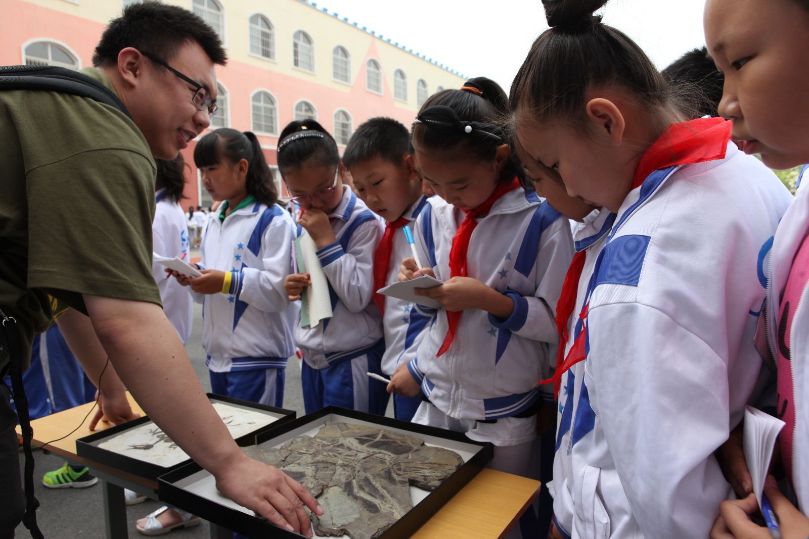 活动中,古生物学院党员教师李莉博士为全校师生讲述了《恐龙与鸟的秘密》,介绍了鸟的起源、种类和恐龙向鸟的演变等相关知识,让这些几乎从未见过化石、对古生物知识知之甚少的孩子们开阔了眼界,了解了新的科学领域;由古生物博物馆参与制作的3D科普电影《会飞的恐龙》更是让所有师生感受到古生物世界的神奇与魅力。同时,古生物学院向两校图书室和村图书室赠送了30套自主创作出版的《生命从远古走来》系列科普丛书,使孩子们能够更加全面系统地了解古生物知识,培养对古生物学科的兴趣。