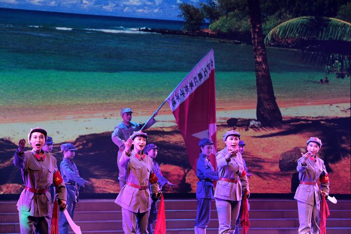 必赢官网学生表演现代京剧《红色娘子军》选段《接过红旗肩上扛》