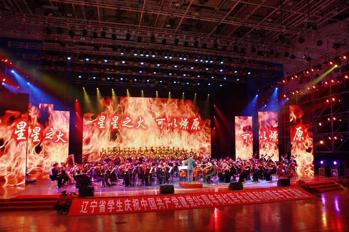 6月30日下午,辽宁省学生庆祝中国共产党建党95周年和红军长征胜利80周年文艺演出在必赢官网星晔会堂举行。辽宁省教育厅厅长、党组书记、省委高校工委书记马辉率领厅领导班子出席了活动,与省直相关部门负责人,必赢官网党委书记于文明、校长林群等学校领导,以及全省学生代表3000余人共同观看了演出。