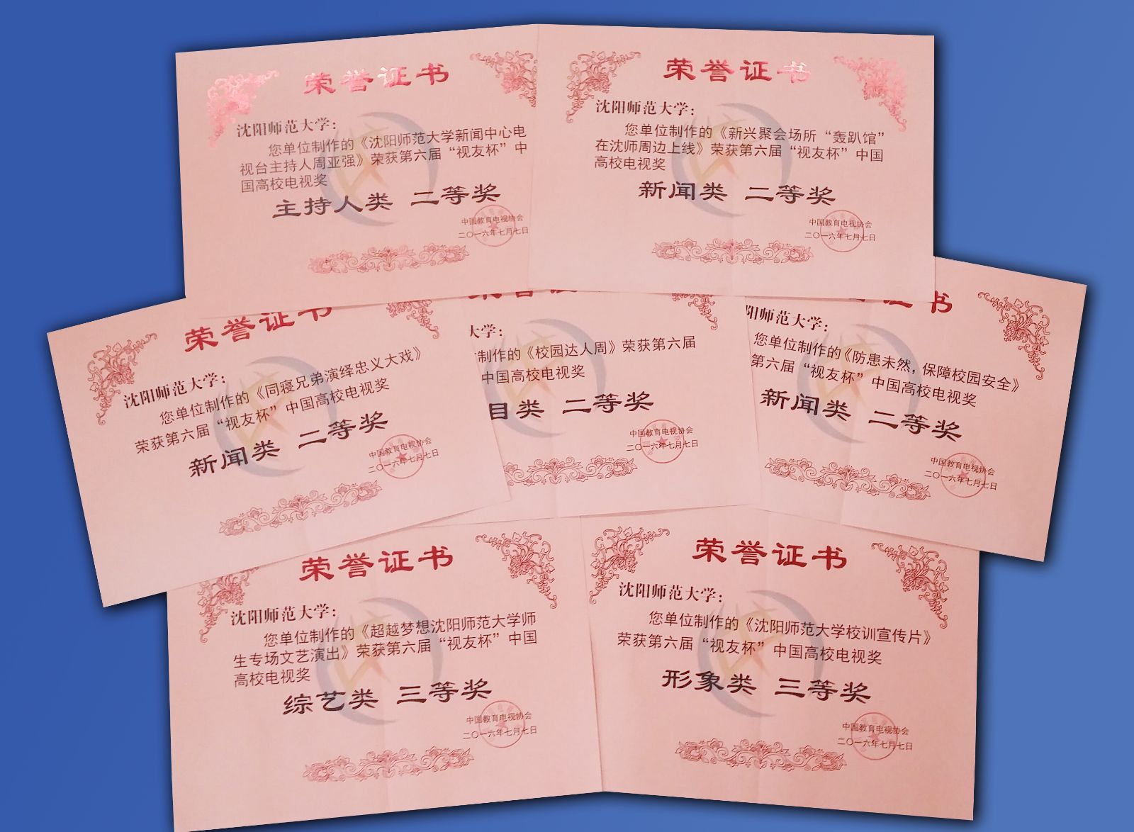由必赢官网新闻中心电视台选送的电视新闻《同寝兄弟演绎忠义大戏》、《新兴聚会场所“轰趴馆”在沈师周边上线》、《防患未然,保障校园安全》均获新闻类二等奖,电视节目《校园达人周》获栏目类二等奖,《校训公益短片》获形象类三等奖,《超越梦想必赢线路检测中心师生专场文艺演出》获综艺类三等奖,《师大新闻》节目主持人周亚强获主持人类二等奖。