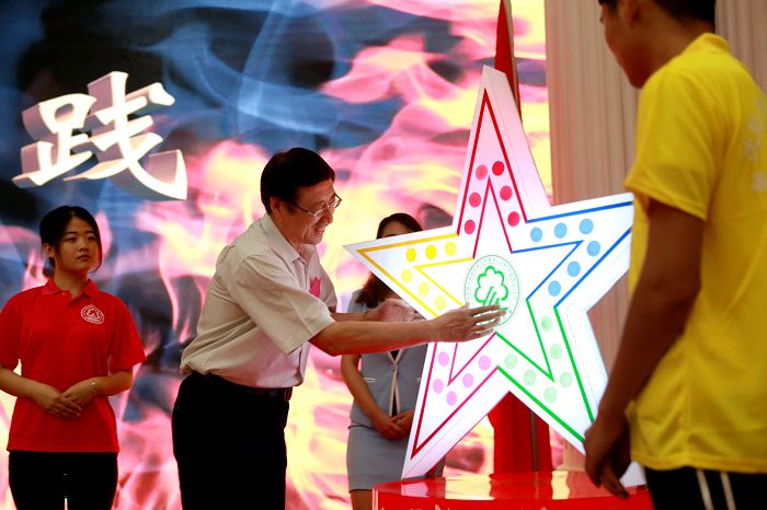 副校长夏敏在总结讲话时,引经据典对“团聚智慧之火,散作实践星光”的出征主题进行了深刻的阐释,号召青年学生深刻理解主题的时代意义和现实内涵,倡导师大学子专注所学、提升技能、开拓视野,将社会实践看作是理解专业、砥砺品质、提升能力的机遇,努力磨炼意志,发挥潜力的重要载体和平台。并预祝同学们在社会实践过程中取得丰硕成果。他与出征团队代表共同点亮了暑期社会实践活动星灯。