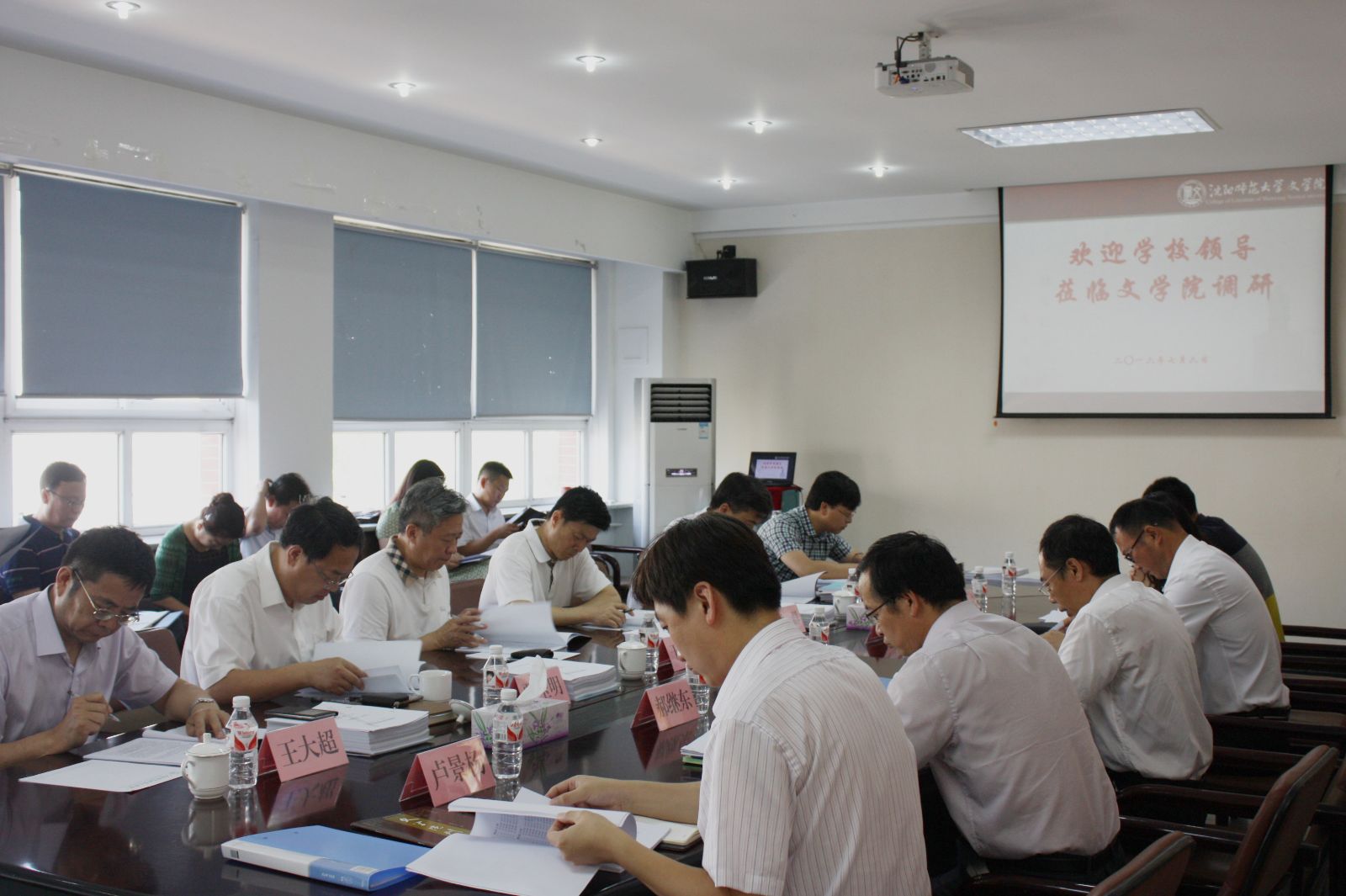 7月6日上午,党委书记于文明,校长林群,党委副书记贾玉明,副校长郝德永、王大超到文学院调研指导工作。学校相关职能部门负责人、文学院领导班子、部分教师以及中国文化与文学研究所部分教师参加了调研会。调研会由党委副书记贾玉明主持。