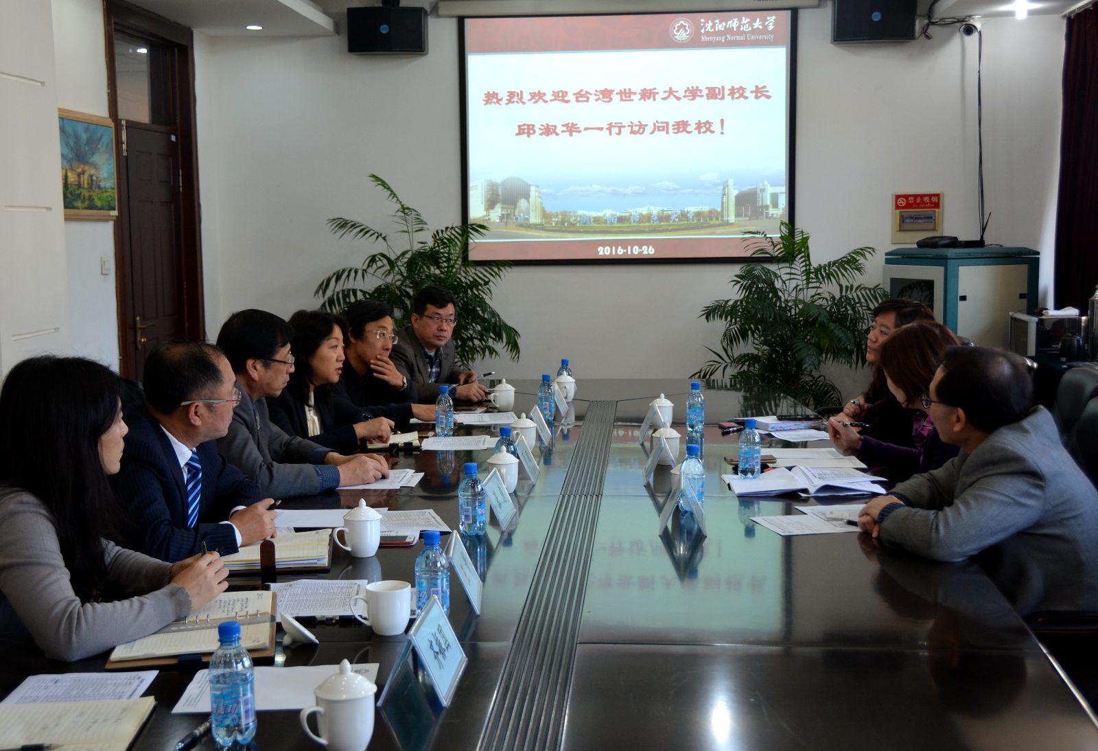 10月26日,台湾世新大学副校长邱淑华、公共事务处处长叶一璋、终身教育学院大陆研修生服务中心陈郁菁一行三人访问必赢官网,副校长夏敏会见了来宾。