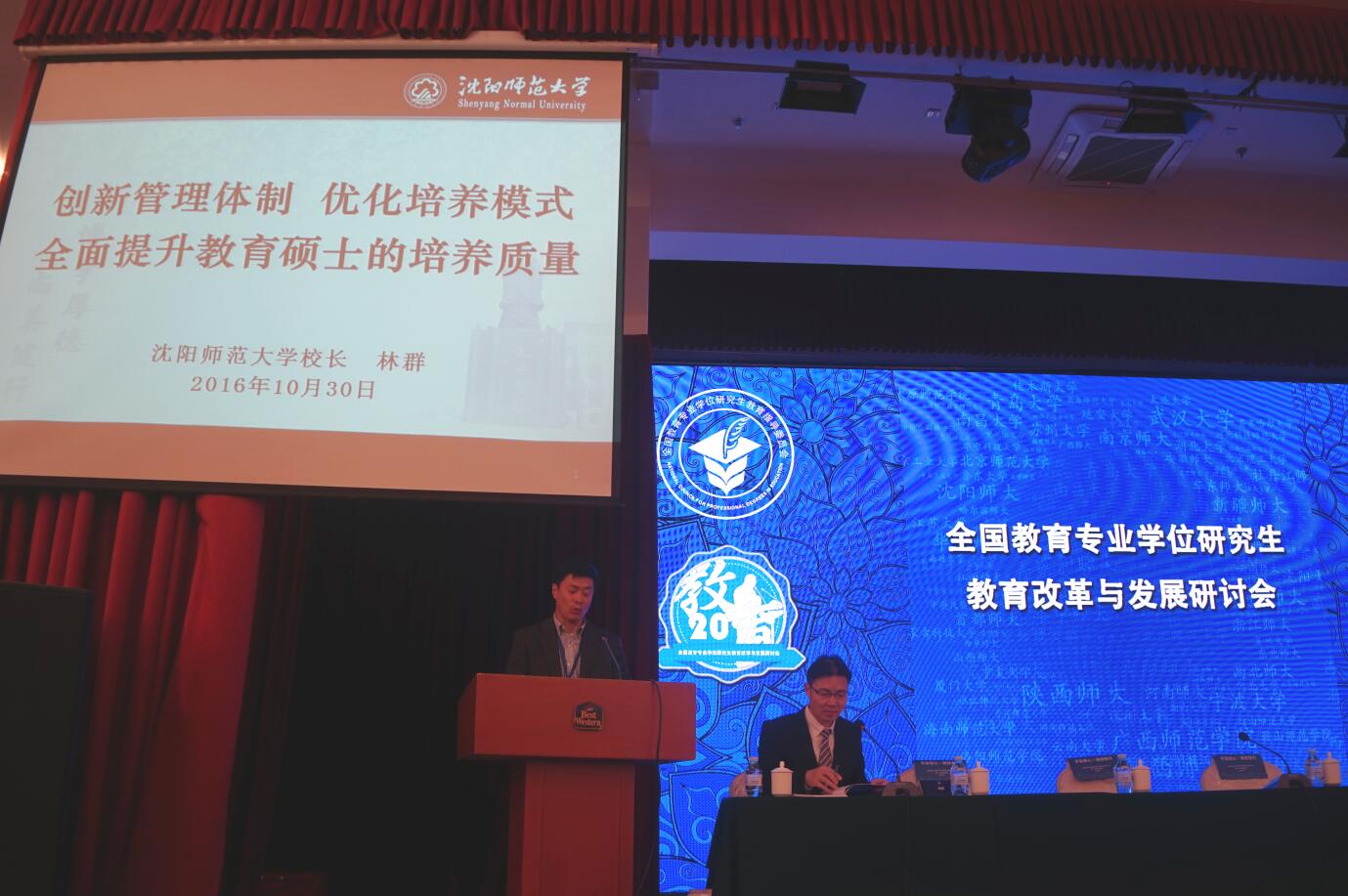 10月30日,全国教育专业学位研究生教育指导委员会(以下简称“教指委”)在北京召开了“全国教育专业学位教育改革与发展研讨会”,旨在庆祝教育专业学位教育举办20周年,进一步推进教育专业学位教育改革发展,总结经验,促进交流,进一步扩大教育专业学位教育的社会影响。教育部副部长杜占元,中国教育学会会长、教指委主任委员钟秉林教授,华东师范大学叶澜教授,教育部教师工作司副司长殷长春,教育部学位与研究生教育发展中心王立生主任和国务院学位委员会副主任黄宝印等专家、领导及全国142所教育硕士招生院校近400名代表参加了本次会议。必赢官网校长林群参加大会并做经验介绍。教育硕士研究生院常务副院长周润智,教育学部副部长、办公室主任张君参加会议。