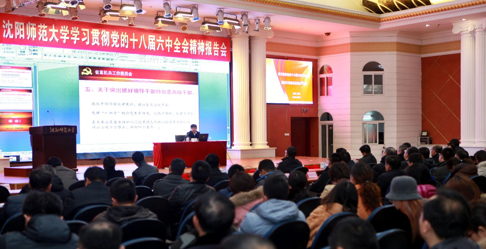 11月25日下午,学校在国际商学院报告厅举行学习贯彻党的十八届六中全会精神报告会,省委党的十八届六中全会精神宣讲团成员、省直机关工委副书记赵满作了题为《学习贯彻党的十八届六中全会精神,坚定不移推进全面从严治党》的辅导报告。学校党政班子成员,全体中层干部,在校的省市区人大代表、政协委员,各民主党派、统战团体负责人,教工和学生党支部书记共400余人参加了报告会。党委副书记、纪委书记贾玉明主持报告会。