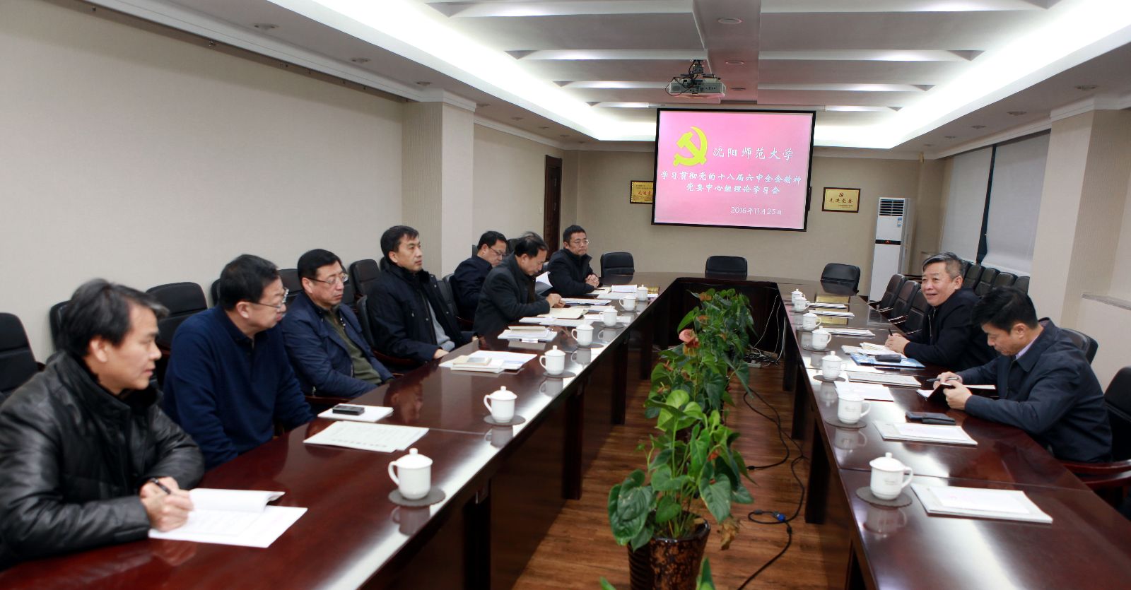 11月25日下午,学校党委中心组在校部303会议室集中学习了党的十八届六中全会精神,学校党委班子成员、党委职能部门负责人参加会议,中心组成员分别围绕六中全会主题,结合学校实际积极发言,谈认识、讲体会。校党委书记于文明主持会议并讲话。