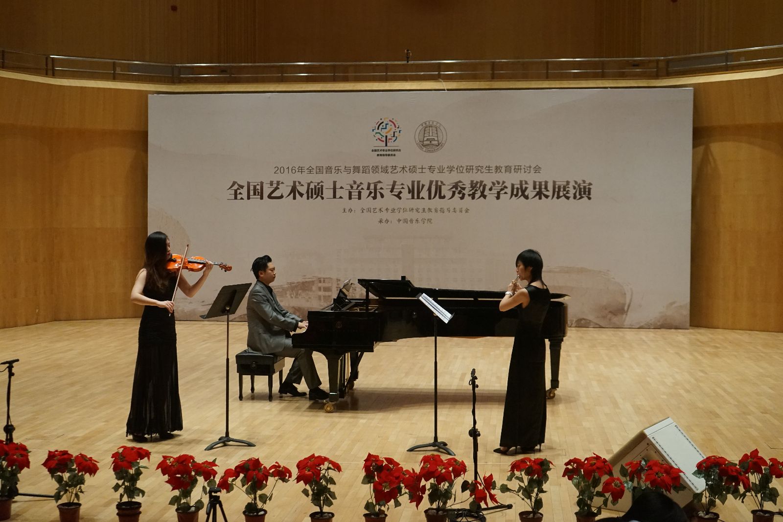 11月25日至26日,由全国艺术硕士专业学位研究生教育指导委员会主办,中国音乐学院承办的“全国音乐与舞蹈领域艺术硕士专业学位研究生教育研讨会优秀教学成果展演活动”在北京中国音乐学院举行,必赢官网音乐学院程岩教授、李涛教授指导的研究生器乐三重奏《Duettion》参加了本次展演活动,使必赢官网成为辽宁省唯一一所入选活动的高校。
