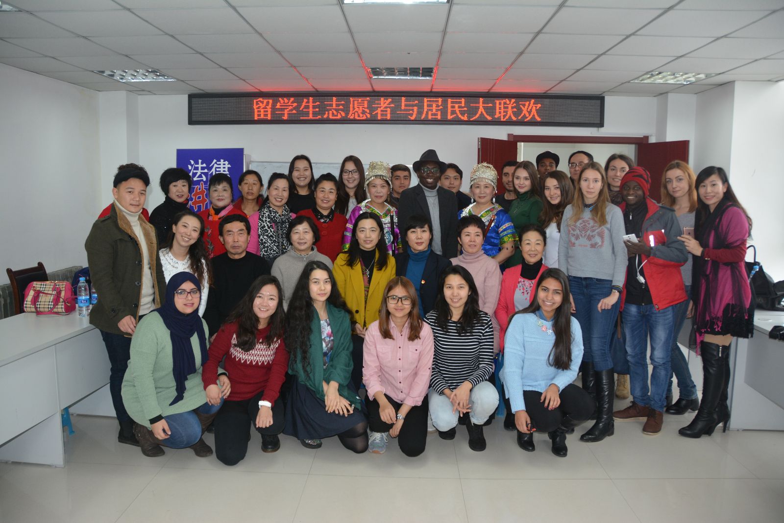 留学生与社区居民齐聚社区活动室举行大联欢。社区居民为留学生们准备了具有中国特色的精彩节目,如京剧、女声独唱《节日欢歌》、乐曲五联奏及其他传统乐器演奏。留学生们也为社区居民精心准备了节目,印度尼西亚留学生廖善娘演唱了中国流行歌曲《听海》、布隆迪留学生钱博文演唱了歌曲《蓝莲花》、俄罗斯留学生亚娜等演唱了俄罗斯著名歌曲、赞比亚留学生康斯特表演了具有非洲特色的舞蹈,留学生们的表演博得了居民的阵阵喝彩。