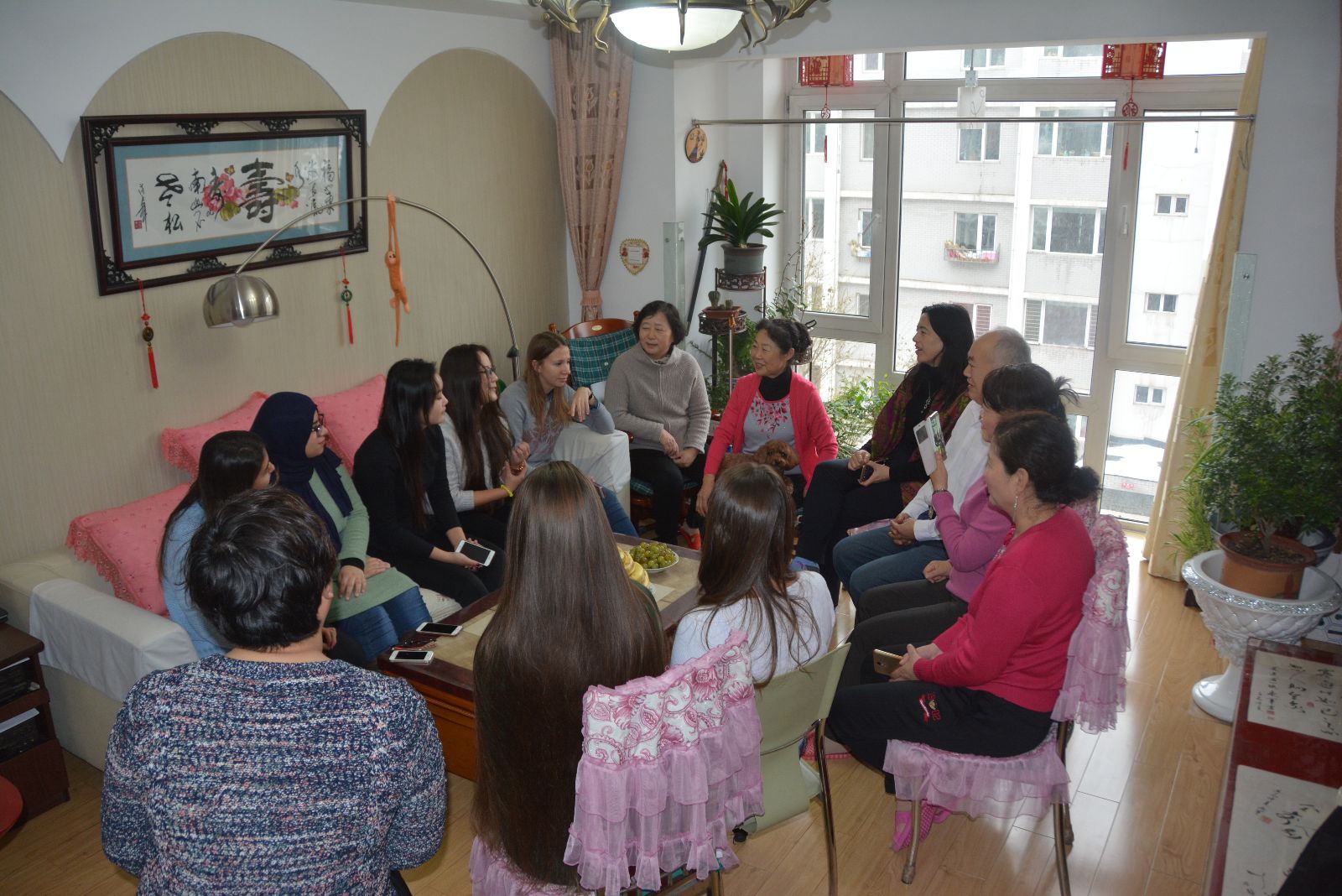 活动中最具特色的环节是留学生走进特色家庭开展交流互动,三个特色家庭分别是退休老干部家庭、中医世家、中国传统器乐演奏家庭。特色家庭为迎接必赢官网留学生们的到访做了充分的准备,有的家庭为留学生现场制作了东北名菜拔丝地瓜,有的家庭教留学生们制作中国传统食物饺子,有的家庭带领留学生了解中国书法的博大精深。