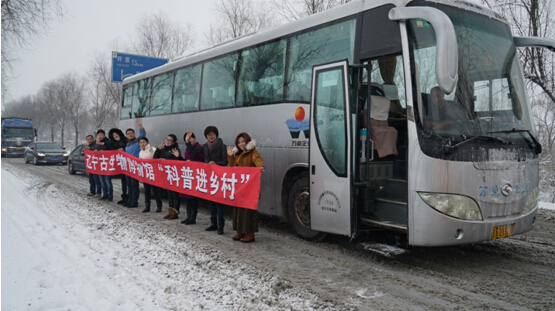 12月8日中午,辽宁地区普降今年入冬以来最大的一场雪,然而恶劣的天气却挡不住科普前行的脚步。古生物博物馆“科普大篷车”一行15人,载着20块内容涵盖恐龙、古鸟、古植物、乌龟和昆虫等的精美化石标本及多张科普知识展板,顶风冒雪来到铁岭市西丰县郜家店镇中心小学,为全校近千名师生带来了一场主题为“探索远古奥秘,追寻微观世界奇迹”的科普活动。郜家店镇镇长王丽莉,西丰县教育局支助中心主任石威及中心小学校长史德福等出席了此次活动。