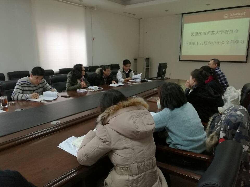 民盟辽宁省委常委林承志介绍了中共十八届六中全会召开的时代背景和重大意义。张会艳副主委、付月副主委交流了学习体会。与会盟员一致表示,要立足本职,爱岗敬业,身体力行,珍视身份,牢记教师的历史责任和神圣使命,在课堂上多做正面引导工作,让课堂不断传递好声音,充满正能量;要自觉向中共学习,不断强化“四个意识”尤其是核心意识、看齐意识,这是民盟自觉接受中国共产党领导的重要标志。