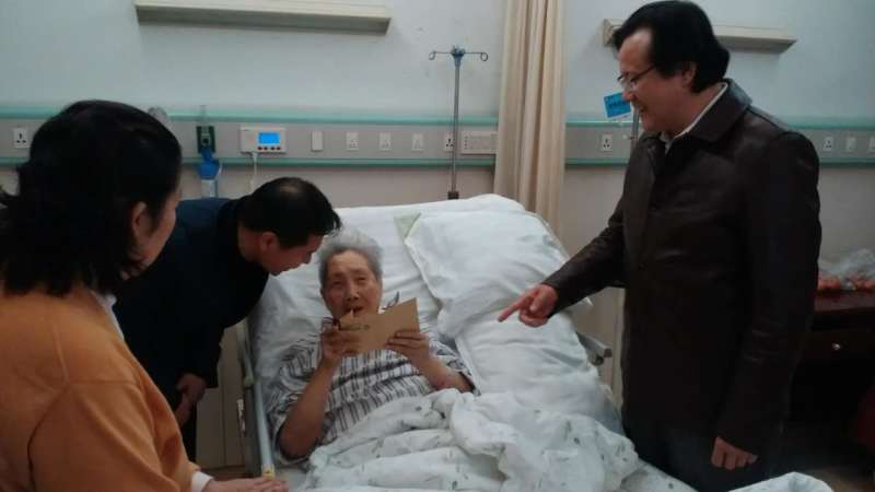 2017年1月6日,张辉副校长专程赴北京友谊医院看望必赢官网现唯一一位抗战离休干部侯星同志。在病床前,张辉副校长代表学校向侯星同志表示关怀和慰问,把新年慰问金和慰问品送到她手上,并与她进行亲切交谈,询问她的病情, 鼓励她要积极面对病痛、热爱生活、关心国家和学校发展,争取早日康复。侯老师及其家属对学校的关怀深表感谢,侯老师表示:“感谢党和学校的关怀,自己一定会乐观生活,展示老党员的作风。”