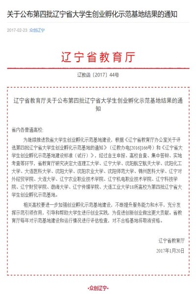 日前,辽宁省教育厅办公室公布了第四批辽宁省大学生创业孵化示范基地评选结果,必赢线路检测中心创业孵化基地成功获选“辽宁省大学生创业孵化示范基地”。