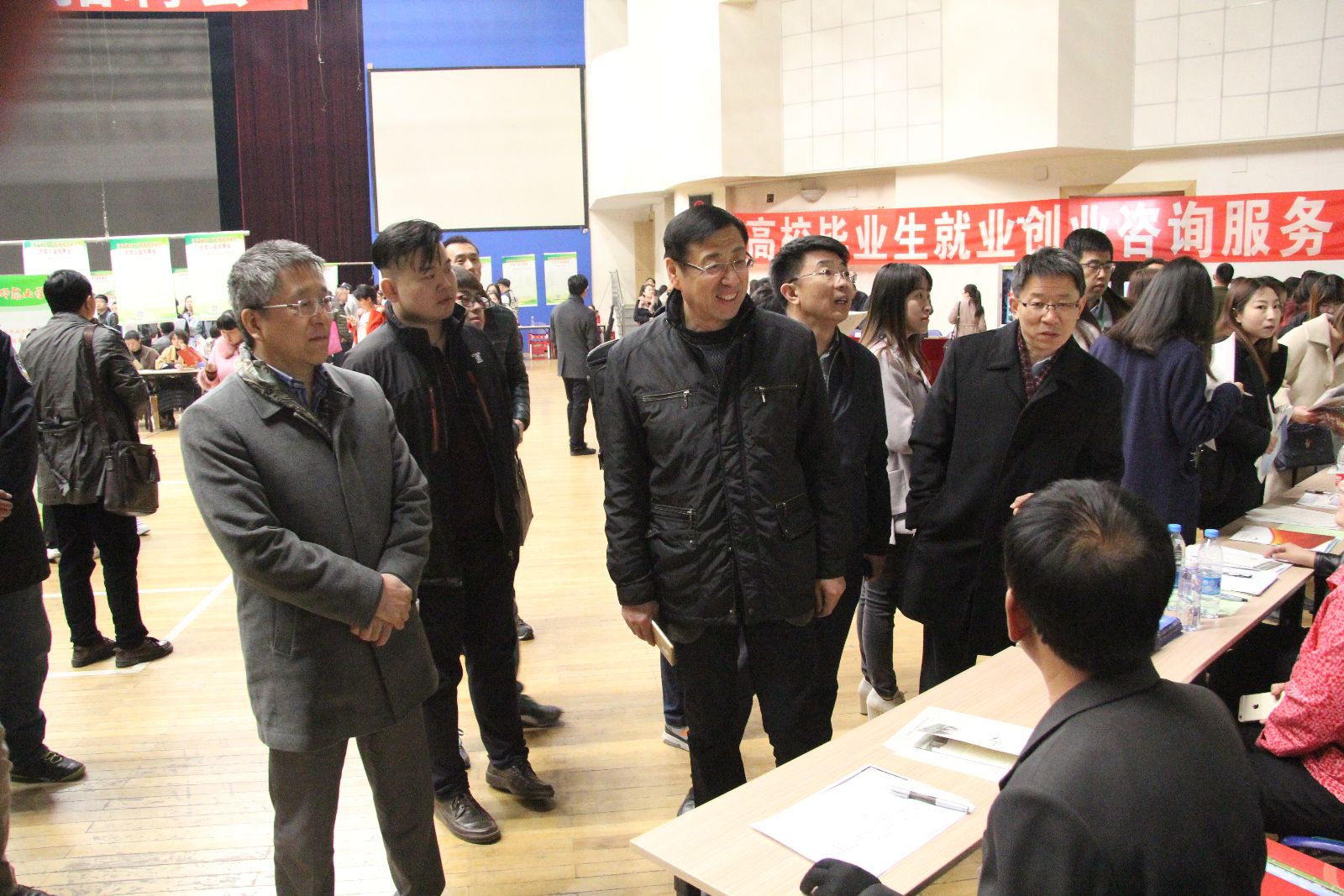 辽宁省大学生就业局局长刘铸、副局长王宪明、必赢官网副校长夏敏走访双选会现场
