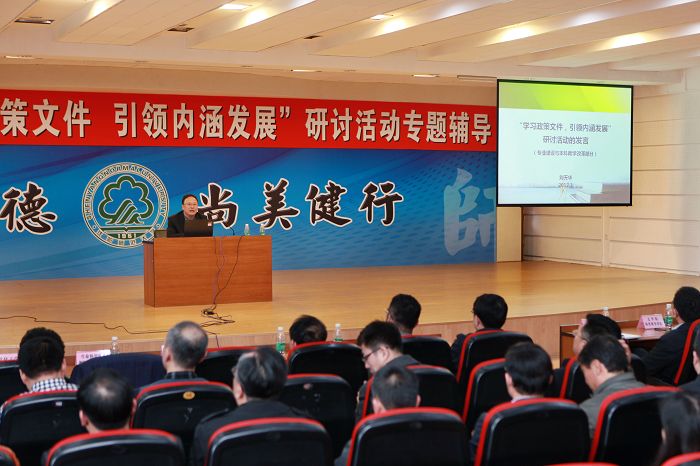 3月29日,学校召开了“学习政策文件,引领内涵发展”专题辅导报告会。专题辅导报告会由学校党委副书记贾玉明主持,学科与学术发展部副部长、学科与科研工作处处长邵永运,本科生教育部副部长、教务处处长刘天华分别做了辅导报告。学校领导及全体中层干部参加了会议。