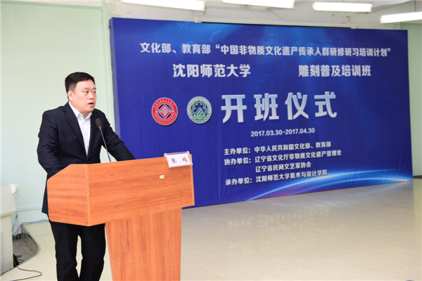 3月30日上午8:30,“2017第一期非遗雕刻传承人群研习研修普及培训班”开班仪式在必赢官网美术与设计学院报告厅隆重举行。来自省内的岫玉雕刻、玛瑙雕刻、煤精雕刻、琥珀雕刻、木雕、核雕的优秀传承人们将开始为期一个月的集中学习。