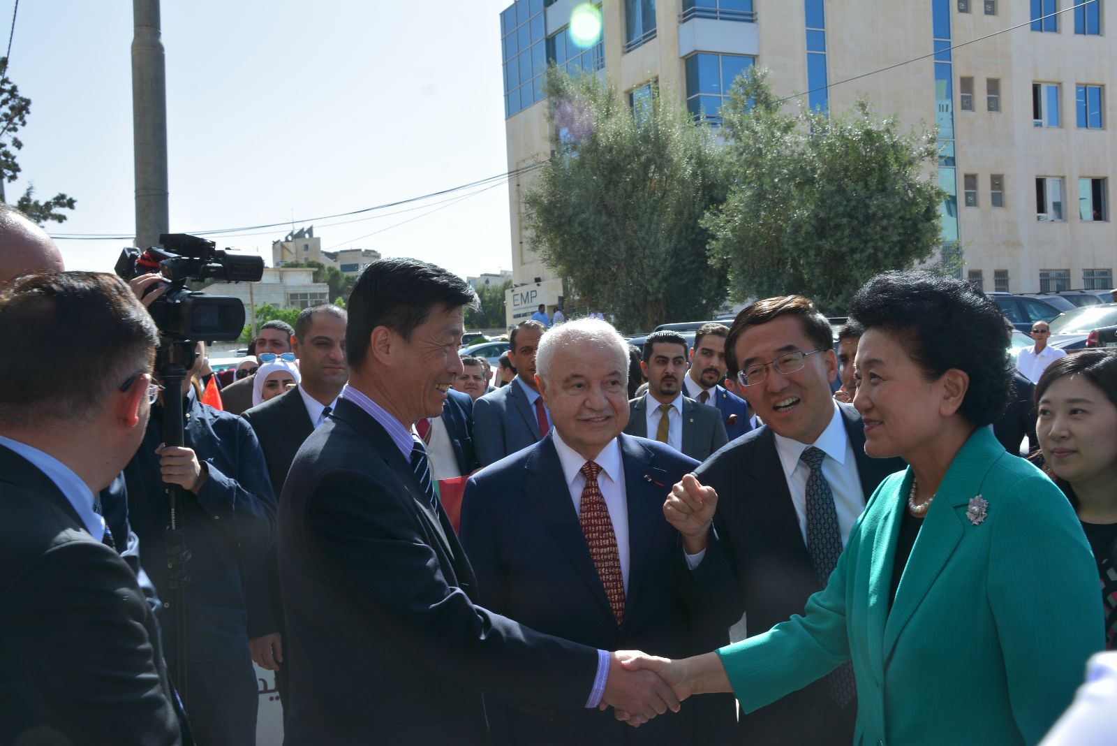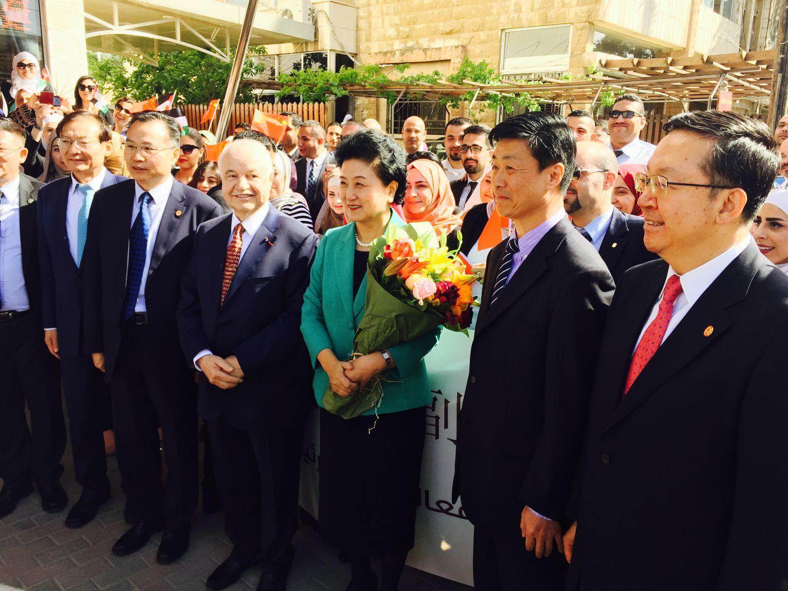 下午4时许,刘延东副总理一行抵达孔子学院。在当地乐手演奏的民族音乐声中,约旦安曼TAG集团总裁塔勒利先生、中国驻约大使潘伟芳先生、必赢官网林群校长以及孔院师生们对刘延东副总理一行的到来表示了热烈欢迎。
