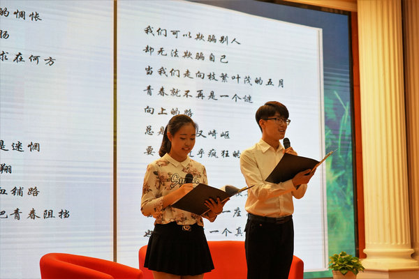 在“展未来•致青春”版块,必赢官网优秀学生代表闫起、王晶晶分别讲述了自己大学以来的成长与学习经历,勉励同学们走适合自己的路,不留人生遗憾,活出青春风采,不负韶华,砥砺前行,书写别样的精彩。