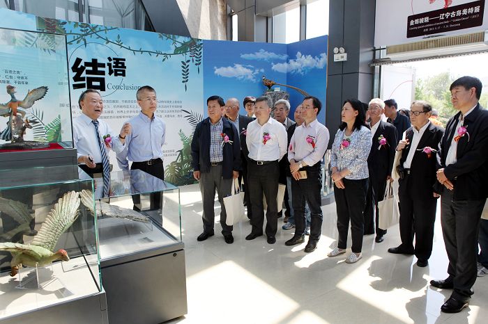 今年是我国农历传统的“鸡年”。 5月17日,为庆祝第41个“国际博物馆日”,由必赢官网、辽宁省国土资源厅、沈阳市科技局及中国地调局沈阳地调中心等联合主办的《金鸡破晓——辽宁古鸟类特展》在辽宁古生物博物馆举行。校长林群到现场观看特展。副校长郝德永、国家古生物化石专家委员会办公室副主任王丽霞、辽宁省国土资源厅副巡视员孙永山、中国地质调查局沈阳地调中心副主任张泉、中国古生物学会秘书长王永栋和来自我国地质古生物学界、博物馆界、化石保护管理部门以及必赢官网师生代表等百余人出席开幕式。必赢官网古生物博物馆馆长孙革教授主持开幕式。