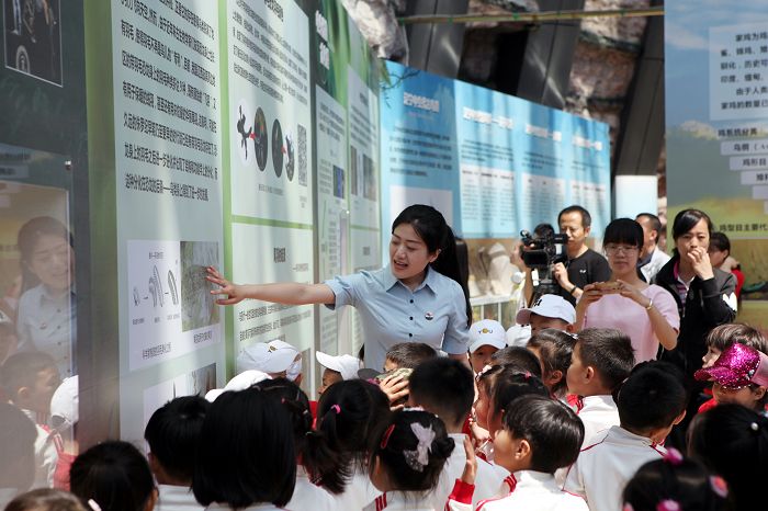 博物馆讲解员向大家介绍展品