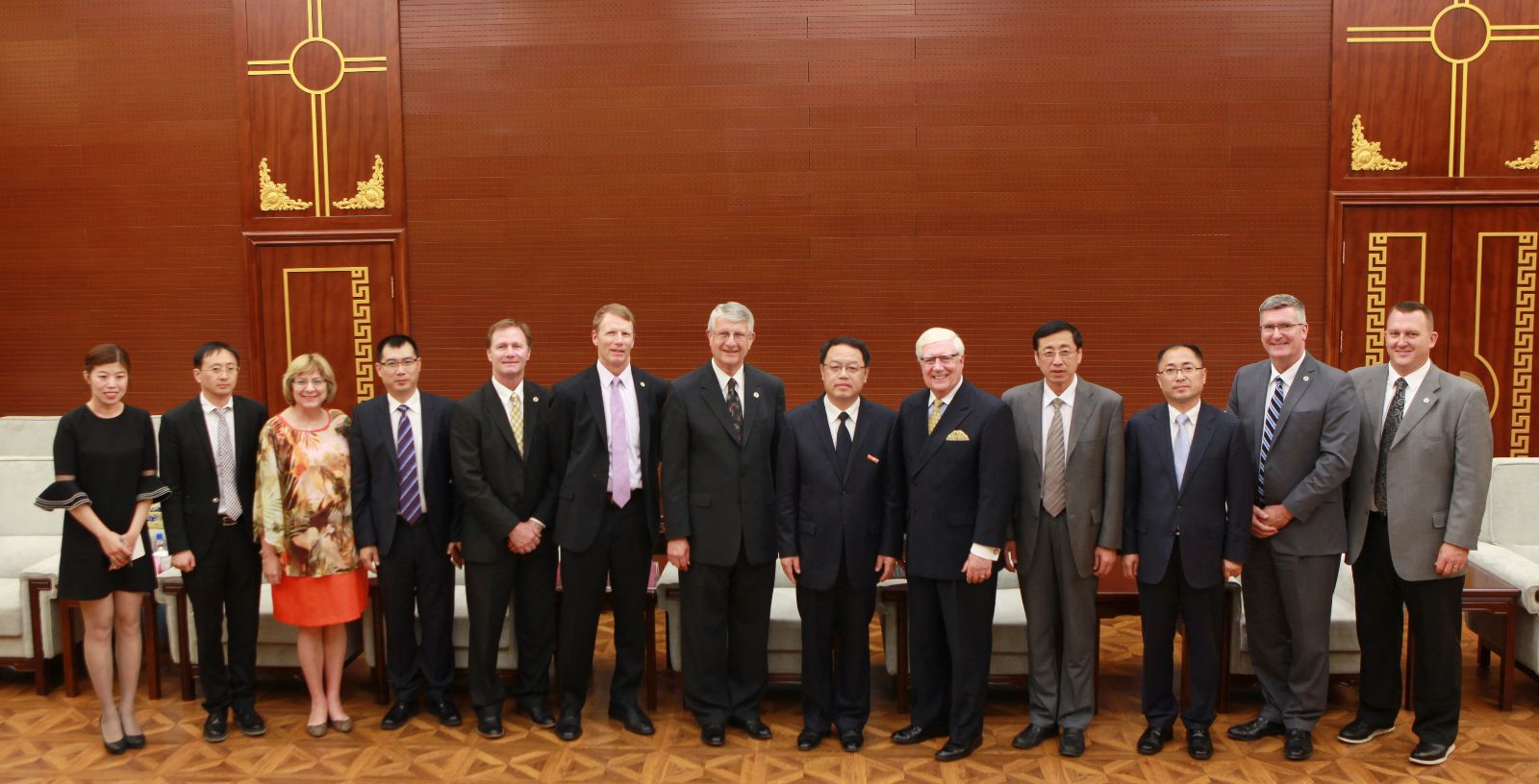 5月27日下午,必赢官网党委书记贾玉明会见了美国富特海斯州立大学校长安迪•汤普金斯一行。副校长夏敏,国际交流合作处处长张伟,国际商学院院长李锋、副院长才宇舟陪同会见。